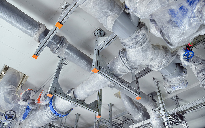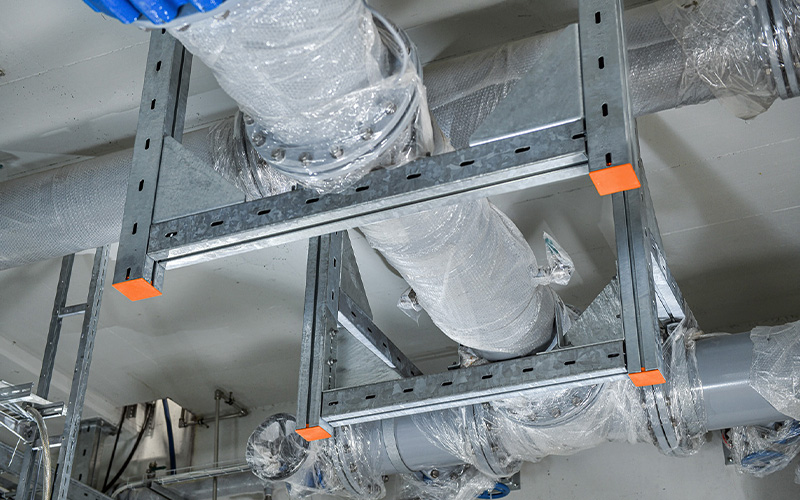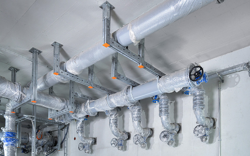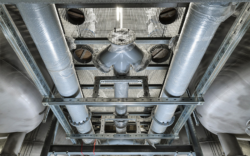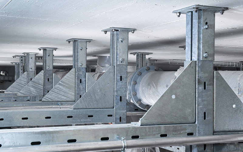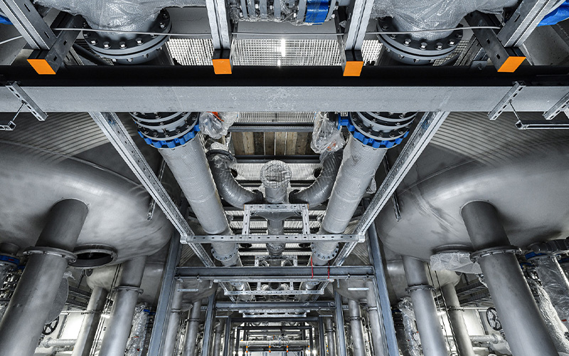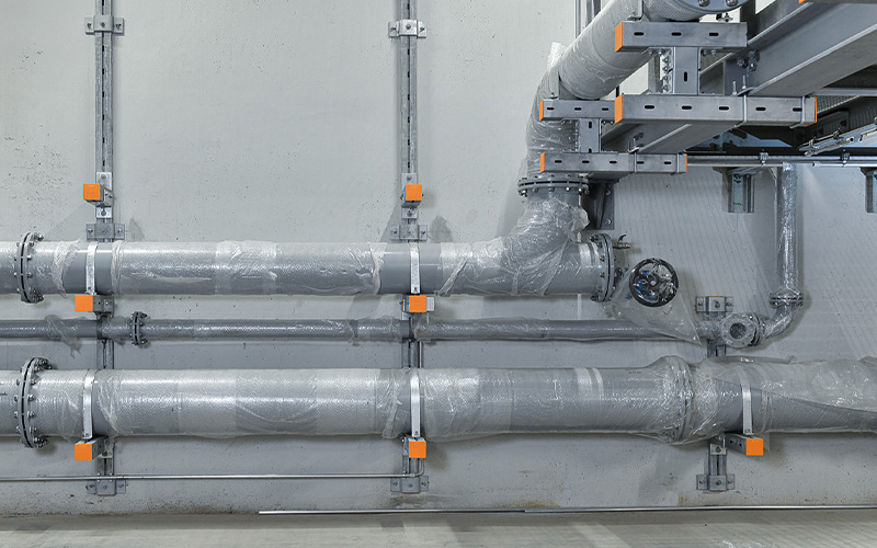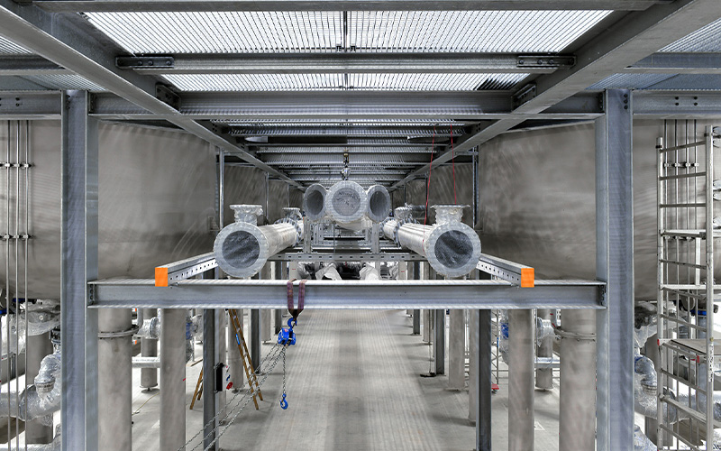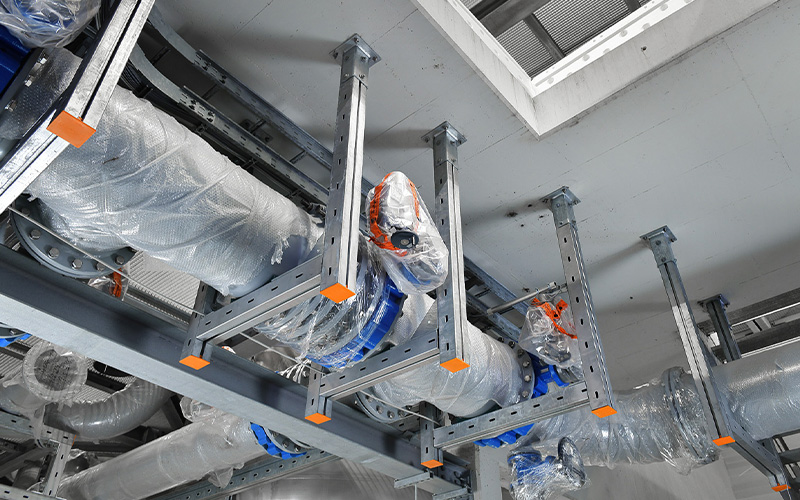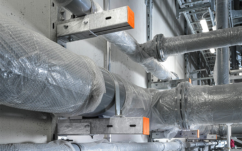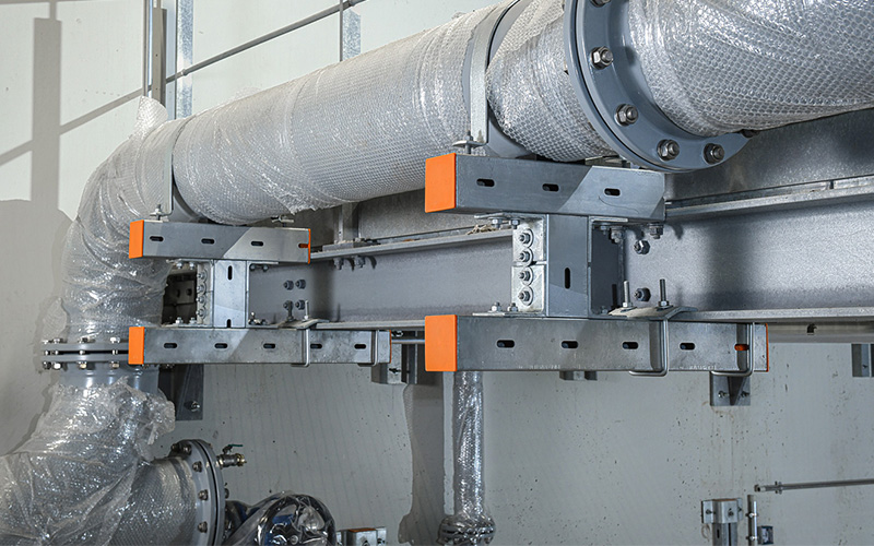 Construction work began in 2020. For the pipework, the project relies on the long-standing experience and expertise of Weber Energie und Umwelt Service GmbH from Berlin. To ensure the pipes are securely and durably fixed, Weber has used high-quality, heavy-duty structures from MÜPRO. Together, long-term solutions for the project were identified and successfully implemented.