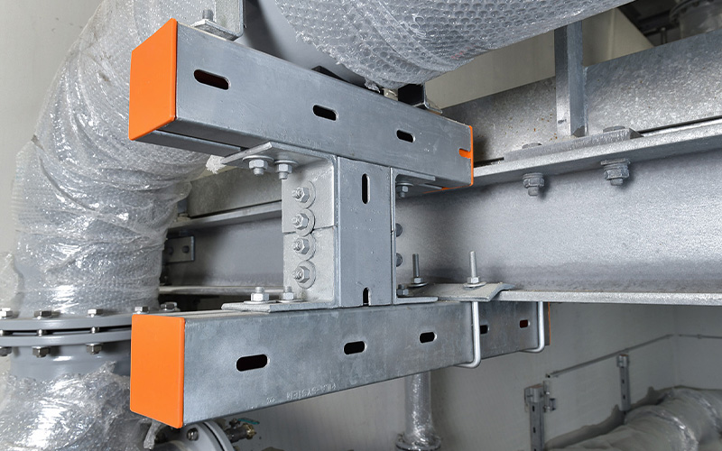 When installing the structure at the water treatment plant, there were several specific considerations to keep in mind, particularly regarding corrosion. This is because moisture and condensation can quickly attack materials and cause permanent damage. The hot-dip galvanised construction of the fasteners from the MPT range allows for trouble-free use both indoors and outdoors. Unlike stainless steel, corrosion protection remains effective even after decades. This actively prevents pitting or stress corrosion cracking and corrosion-related fractures. The zinc coatings are also highly resistant to mechanical stress. This ensures the long-term usability of the structure, particularly when used in water supply systems.