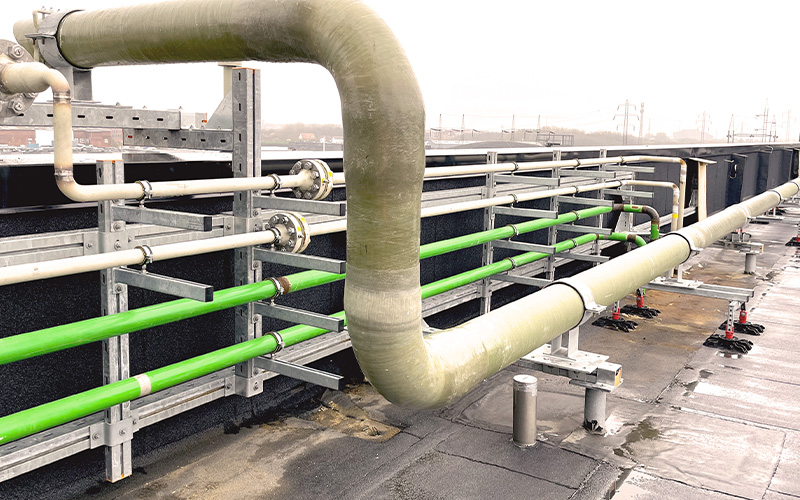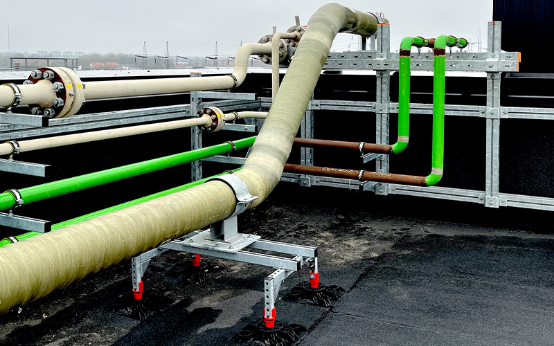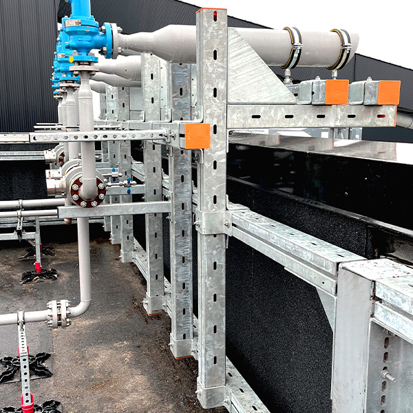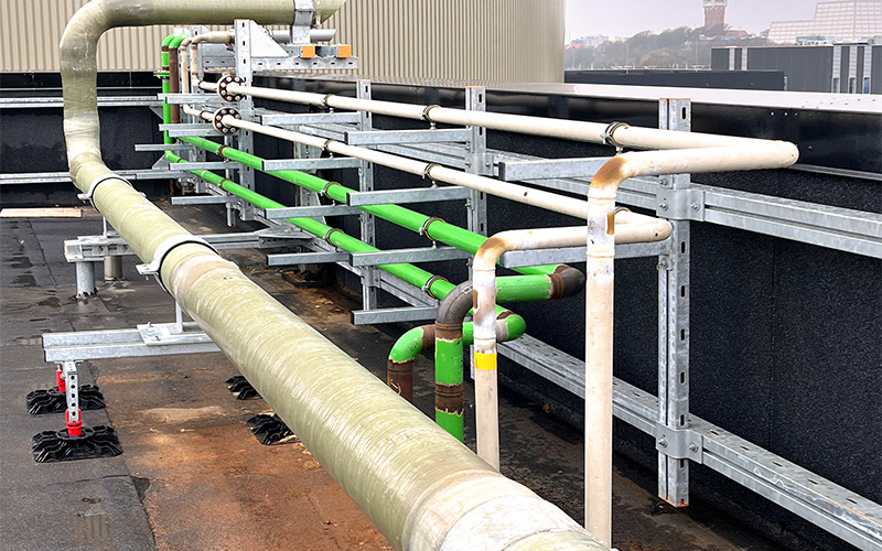 In Esbjerg, the MPT system was combined with elements from the MPR and MPC systems. MÜPRO was able to draw on a wide range of products from its fastening portfolio, enabling the company to implement this large-scale project with precision. The complete MPT system consists of hot-dip galvanized profiles that are corrosion-resistant and can be used both indoors and outdoors. The fastening technology is also used for the seawater heat pump, both inside the factory building and outdoors. In this way, MÜPRO provides the right fastening solution for every application.