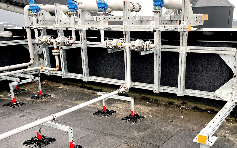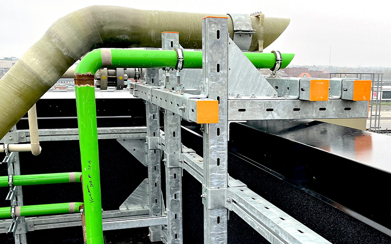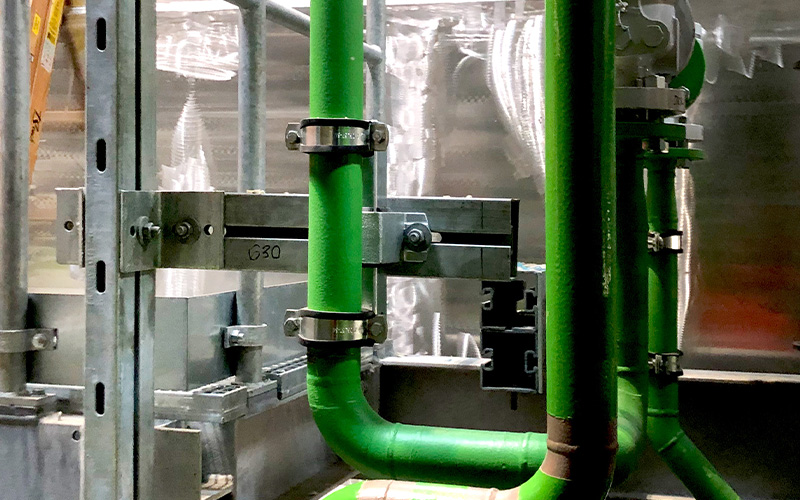 For the structural implementation of this large-scale project, MÜPRO relies primarily on the MPT support system. This system offers a high-performance solution for demanding heavy-duty structures—such as heavy building services or piping systems in industrial and plant engineering—while also being more cost-effective than conventional steel construction. MÜPRO has developed the MPT system with a continuous mounting groove that allows for flexible connection of mounting and fastening components. This eliminates the need for time-consuming welding work, and the system stands out for its ease of use. Assembly without welding saves costs and increases flexibility on the construction site, a factor that was of crucial importance for the project in Esbjerg. Here, the brackets were installed on an as-needed basis. For the implementation, the experts from MÜPRO had time frames of around 24 hours, during which they could flexibly adapt the structure and implement the prior structural engineering plans. In doing so, the company’s engineers found tailor-made solutions and ensured maximum planning reliability through on-site installation and construction site support throughout the project.